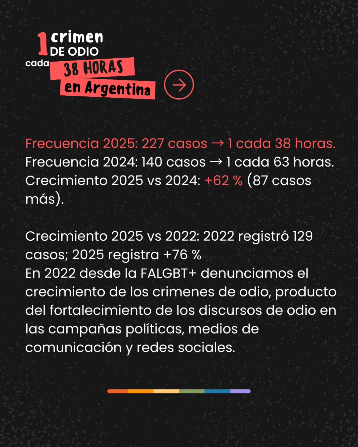 Los datos finales del Observatorio de Crímenes de Odio de la FALGBT de 2025 cierran un año negro: se documentaron 227 crímenes de odio en el país, un aumento del 62% respecto a 2024.